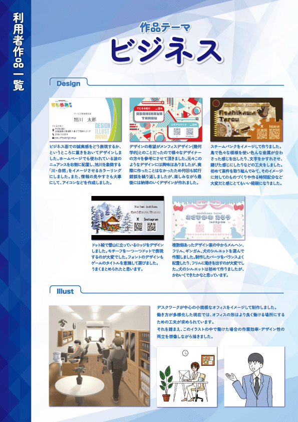 Vol.06では、「ビジネス」をテーマに、イラスト・グラフィックデザインの作品を制作していただきました。 人物のイラストや名刺のデザインも素敵な作品ばかりなのでぜひご覧ください!